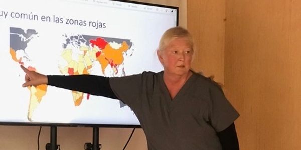 In keeping with the concepts of International Public Health, we are currently working on "capacity building", which is providing health promotion and education to enable communities and individuals to more efficiently self-manage their health care challenges. We have provided classes (in Spanish) on the importance of using water filters, care and maintenance of water filters, nutritional needs, family planning, prevention of ascariasis (intestinal worms), wound care, and the importance of cervical cancer screening. We hope that in the future, the communities will not depend on outside assistance for their health care needs and challenges. Below are photos of our team giving some lessons and classes. Tabitha, RN, gave some wonderful hands-on wound care classes to student nurses in Ecuador. Jeannie, RN, Nigam, APRN, Disa (medical student) and Rhonda, APRN are seen giving classes in San Andrês Ceballos.